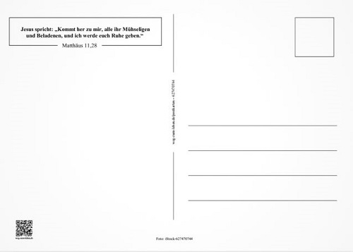Jesus spricht: "Kommt her zu mir, alle ihr Mühseligen und Beladenen, und ich werde euch Ruhe geben." (Matthäus 11,28) Artikel: 627470744